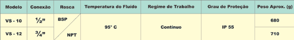 em dois modelos básicos (VS-10 e VS-12), normalmente fechados (NF), para uso geral na automação