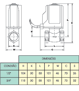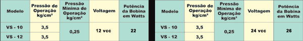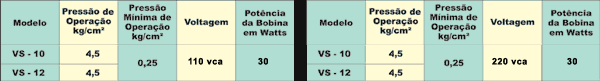 As Válvulas Solenóides VS-10 e VS-12 apresentam um